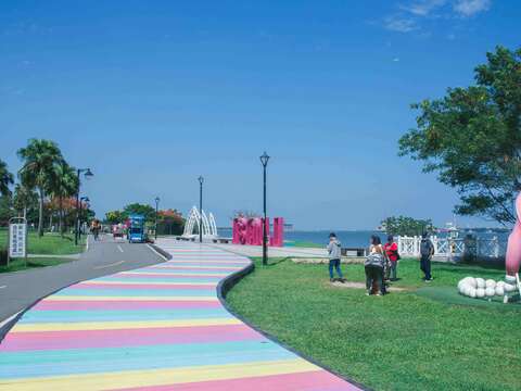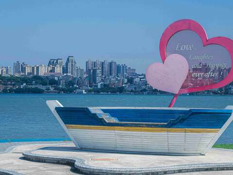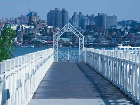 漫步彩虹步道欣賞風光,八里左岸的婚紗廣場,是以「幸福」為主題設置的水岸婚禮廣場,融合八里地區特色,不銹鋼的鏡面,反射著淡水河的美景及情侶身影,為新人們留下浪漫唯美且難忘的婚紗照。