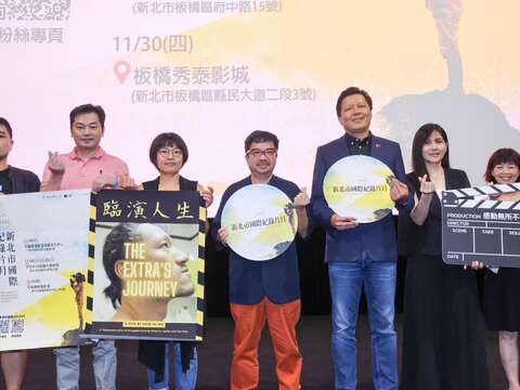 【新北市訊】「2023新北市國際紀錄片月」11月起登場,新北市政府新聞局4日在國家電影及視聽文化中心舉辦開幕放映,播映來自新北市紀錄片獎優選影片發展成之長片《臨演人生》,副市長朱惕之、新聞局長張愛晶、國家電影及視聽文化中心董事長褚明仁、歷年評審及優選影片導演皆到場支持,同時規劃映後座談,由該片創作導演伍心瑜率團隊與民眾分享拍攝期間親眼所見的「臨演人生」。