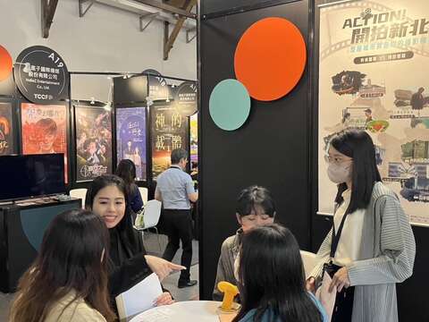 新北市協助影視拍攝與發展中心(下稱新北協拍中心)自成立以來,致力以單一申請諮詢窗口、友善便利服務,提供國內、外影視團隊優質協拍服務。為擴大服務對象,首次參與由文化內容策進院舉辦的「2023 TCCF 創意內容大會—市場展」,期盼透過主動出擊且面對面的形式,提供更即時的場景諮詢予影視團隊,尋求更多合作機會。首次參展即吸引柏林、日本、智利、菲律賓、馬來西亞等超過30組國內、外影視劇組洽詢,不僅讚嘆本市場景多元豐富,更對積極友善的服務態度印象深刻。