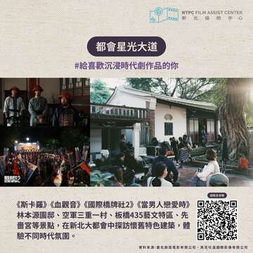 邁入第13年的新北協拍中心,至今協助超過6,700件協拍服務,甫榮獲第58屆金鐘獎的影集《村裡來了個暴走女外科》、《人選之人—造浪者》及《模仿犯》,與入圍第60屆金馬獎的《關於我和鬼變成家人的那件事》、《老狐狸》、《周處除三害》等作品,都曾造訪在新北取景拍攝,大幅提升新北場景能見度。