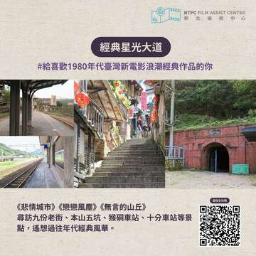 為持續推廣影視協拍量能,新北協拍中心亦藉由3條「影視朝聖之路」行銷新北城市之美。「經典星光大道」,串起1980年代台灣新電影浪潮經典作品如《悲情城市》、《戀戀風塵》及《無言的山丘》,帶大家尋訪九份老街、本山五坑、猴硐車站與十分車站等景點;「都會星光大道」,走訪《斯卡羅》、《血觀音》、《國際橋牌社2》取景地,感受林本源園邸、空軍三重一村、板橋435藝文特區在鏡頭下的魅力。最新推出的「青春山海線影視大道」則以北海岸一帶的知名人文古蹟與自然風景為主,循著《不能說的秘密》、《斯卡羅》、《茶金》、《國際橋牌社1》等知名作品的腳步,漫步麟山鼻木棧道、紅毛城、小白宮等場景。