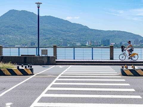 金色水岸自行車道長約15公里,非常平整好騎,很適合親子一起觀察白鷺鷥與招潮蟹等生態,一邊享受騎乘樂。街道兩旁林立熱鬧的商店,包含有濃濃古早味的米行、餅舖、布店、雜貨店等。接著來到金色水岸公園廣場中央,有以透視原理所繪製而成的3D地景,可以拍攝出「淡水」立體字體,不僅成為淡水街景另一個拍照熱點,也讓國內外的旅客留下最美的照片與回憶。