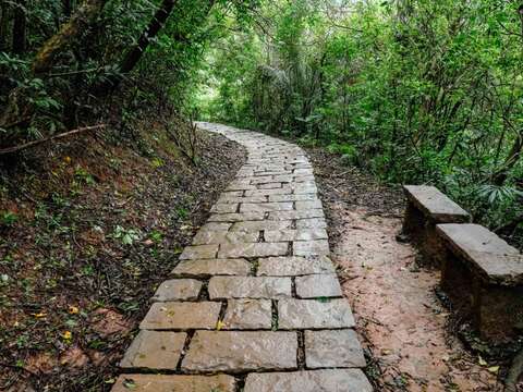 草嶺古道位在淡蘭古道的北路,是臺灣目前僅存清朝道路遺跡之一,沿途不僅林木蒼鬱,溪水潺潺,大自然的聲音迴盪耳邊,還有雄鎮蠻煙摩碣、虎字碑等歷史古蹟可探索欣賞,相當適合民眾前來健行,若於秋日芒草季節探訪,漫山的雪白芒花更是隨風搖曳,推薦影視劇組前來捕捉浪漫而悠閒的自然景色。