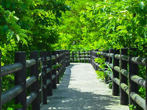 沿著濕地穿梭,會經過一座古典風格的木造拱橋─「五分埤橋」,橋身融入周圍自然景致,散發濃濃人文氣息,站在橋上望去,五分埤生態濕地的全貌一覽無遺,繼續漫步於臨水石頭步道與綠蔭木棧道,隨著角度不同、光影變換,每一步都是一幅風景畫。這裡一年四季都有不同驚喜:春天有櫻花綻放、夏天荷花盛開與螢火蟲點點閃爍、秋冬則有穗花棋盤腳展現浪漫風情,不少攝影愛好者、網美都特地前來取景打卡,更是劇組尋找自然景觀拍攝地的絕佳選擇!