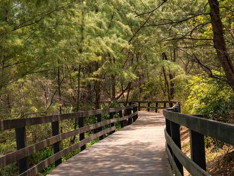 來到麟山鼻沙灘,別錯過緊密相連的麟山鼻步道!這條木棧步道依山傍海,一側是訴說地質歷史的黑褐色風稜石,另一側則面向海平線;沿途防風林環繞,使步道在夏日行走時更顯清爽寧靜。豐富多變的地景,讓這裡成為影視作品常見的拍攝場域,也曾入鏡電影《不能說的·秘密》中,男主角騎著自行車送女主角回家的經典場景。