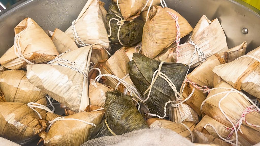 石門區民從前以粽子祭拜,傳說廟宇顯聖護民,石門肉粽的盛名即不脛而走,十八王宮廟外集結諸多攤商,從粒粒分明的北部粽,到軟糯彈牙的南部粽,各有擁護。