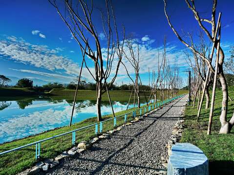 「沐心池」坐落於樹林環保河濱公園內,擁有獨特的鏡面水池,周邊亦保持著渾然天成的景觀,藍天白雲、綠蔭湖水,是不少人享受自然的好去處。