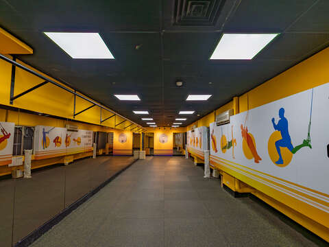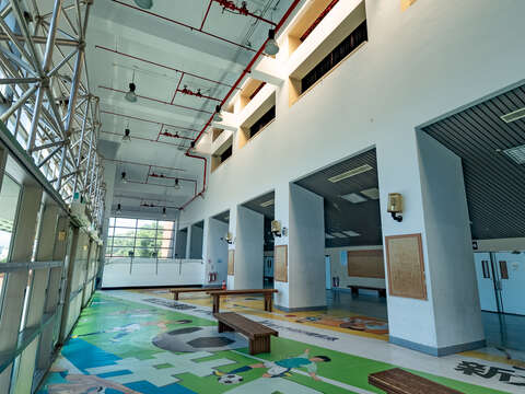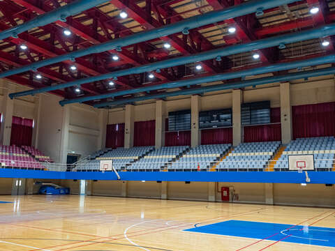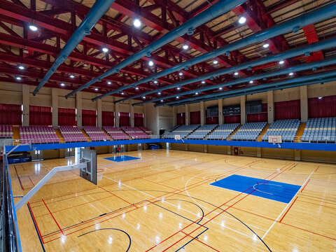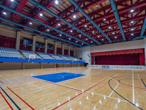 館內運動場地鋪設PU彈性地板與防護海綿牆,兼顧運動彈性與安全需求。二樓設有大型活動空間,可舉辦體育競賽與集會,三樓觀眾席看臺可容納約2,000人。板樹體育館具備多樣運動與群聚場景特色,適合作為影視劇組拍攝各類訓練、比賽、集會或運動課程場景的實用場地。