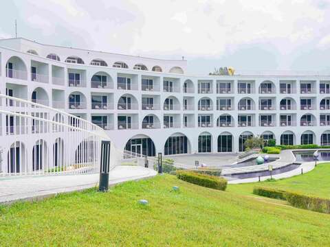 滬尾藝文休閒園區結合戶外生態環境、酒店、百貨商場與多功能展場等,是淡水亮點地標,幾何對稱的雪白綠建築融合了淡水知名的拱型洋樓設計,搭配戶外大片草地,成了假日期間親子放電同樂的好去處,同時也吸引了不少婚紗業者、影視劇組來此拍攝。