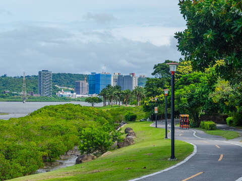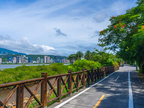 自行車道前段沿線可遠眺關渡大橋的壯麗景色,中段則有多處觀景點,例如挖子尾紅樹林自然保護區的水筆仔和濕地生態,還有老榕碉堡的軍事歷史氛圍,豐富的自然與人文提供了不同的取景元素,無論是都會浪漫、自然生態,還是動態場景,都能在這裡找到合適的畫面。