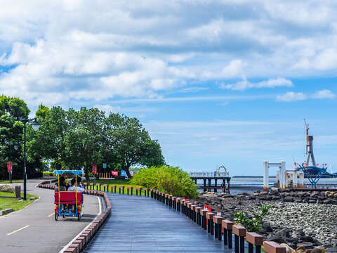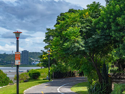 八里左岸自行車道全長約14公里,緊鄰陽光下波光粼粼的淡水河畔,沿途風光迷人,當騎著自行車徜徉其中時,極富青春校園的活力氣息;傍晚時分,佈滿天際的橘紅瑰麗彩霞,頓時讓青澀抹上一股浪漫的氛圍,是極具潛力的影視拍攝場景。
