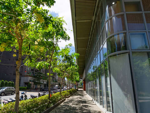 建築簡潔具現代感,鄰近學校與公園,周邊生活機能成熟,具備拍攝市區場景之條件,為結合生活與影視實景應用的潛力場域。